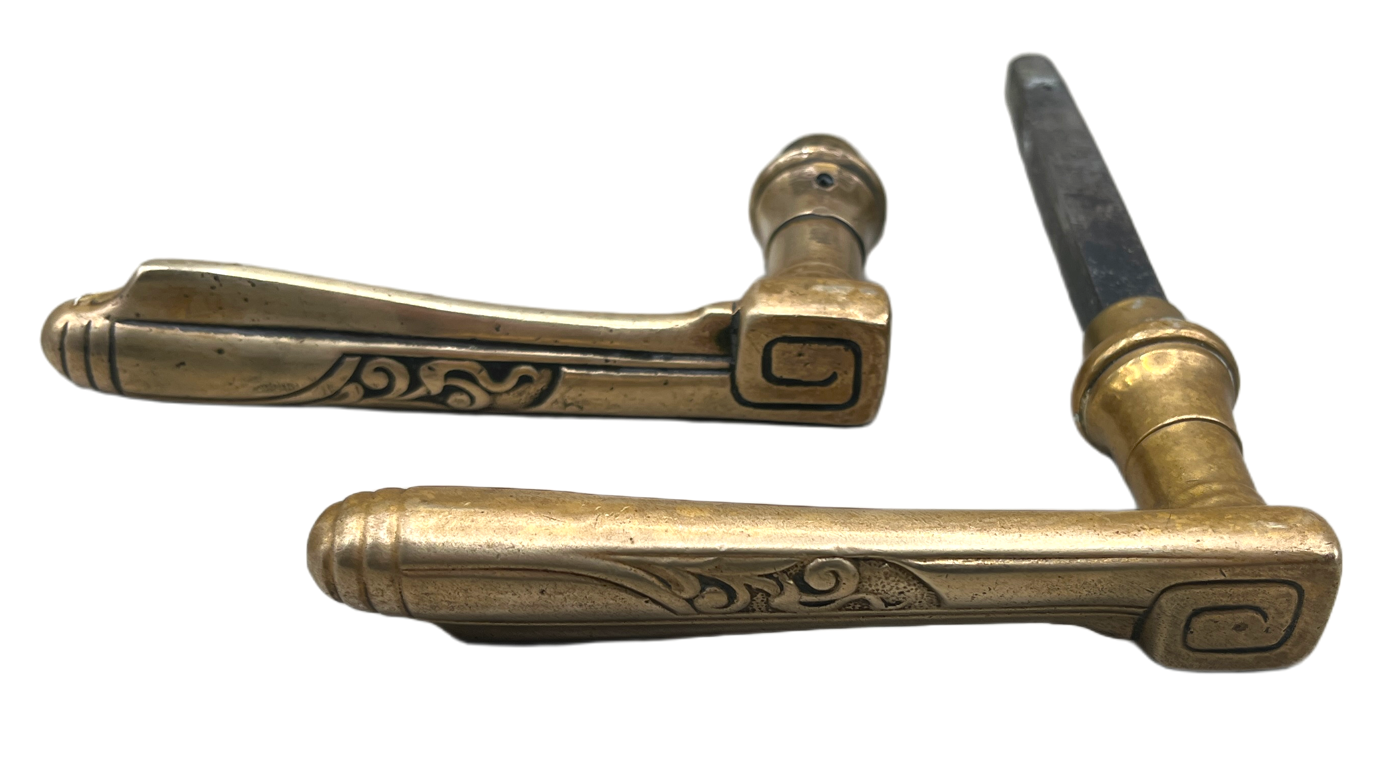 Produktinformationen "Türgarnitur Jugendstil aus Messing mit Nachtriegel"